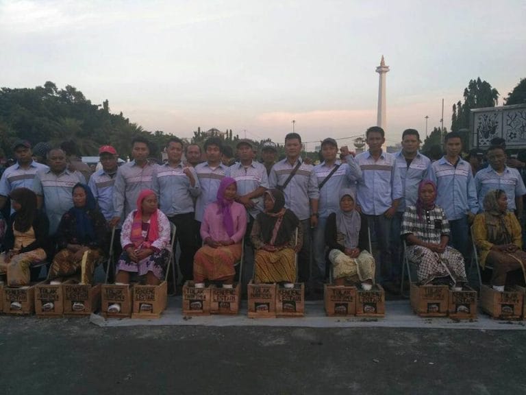 Solidaritas FBPTI KPBI terhadap perjuangan warga Kendeng, di Jakarta (Maret, 2017). Kredit: FBTPI.