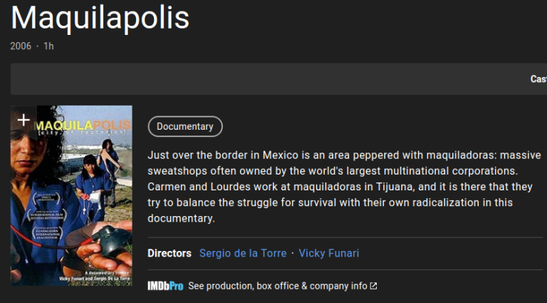 ‘Maquilopolis: city of factories’. PBS.10 Oktober 2006.http://www.pbs.org/pov/maquilapolis/film_description.php