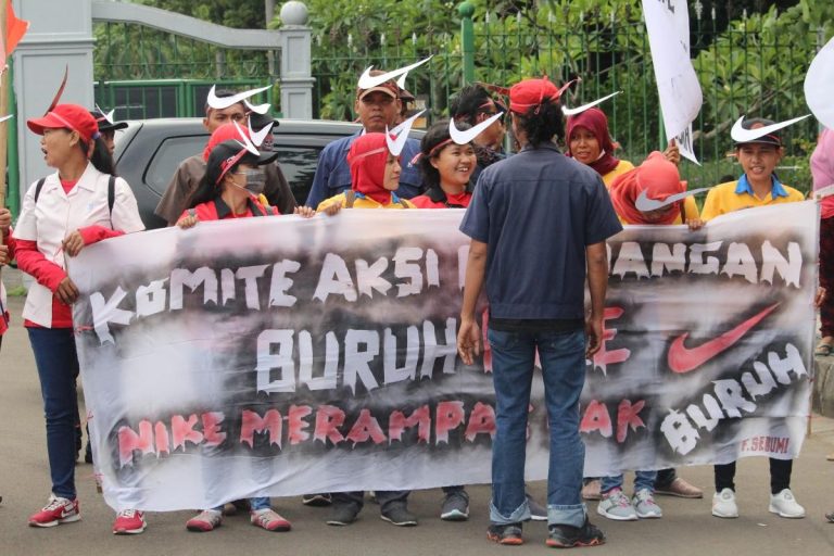 Di ujung lain, terdapat kelompok terdiri tidak lebih dari 25 orang. Mereka adalah “buruh Nike” yang masih menunggu kedatangan teman-teman mereka dari Karawang dan Tangerang. Kelompok ini terdiri dari SEBUMI KASBI (Kongres Aliansi Serikat Buruh Indonesia) PT Kaho Indah Citragarment, FSPEK KASBI (Federasi Serikat Pekerja Karawang Kongres Aliansi Serikat Buruh Indonesia) PT Dream Sentosa Indonesia, FSBN KASBI (Federasi Serikat Buruh Nusantara Kongres Aliansi Serikat Buruh Indonesia) PT KMK Global Sports Indonesia, dan SEBUMI KASBI (Serikat Buruh Merdeka Indonesia Kongres Aliansi Serikat Buruh Indonesia) PT Bintang Indokarya Gemilang.