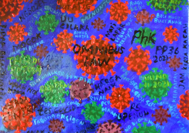 Di masa Covid-19, kehidupan buruh dan keluarganya makin tidak menentu. Dengan alasan terdampak Covid-19, buruh terancam dipecat atau dikenai pemotongan upah; atau bekerja dengan terpapar virus karena tidak disediakan alat pelindung diri memadai.