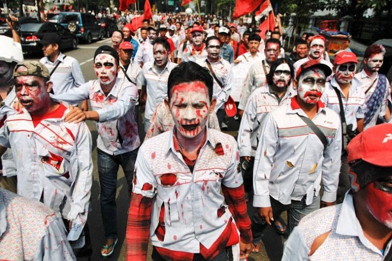 Ratusan buruh yang bekerja sebagai awak mobil tangki (supir dan kernet) yang mendistribusikan bahan bakar minyak (BBM) ke satuan pengisian bahan bakar umum (SPBU) melakukan aksi longmarch dari Bandung ke Jakarta dengan berpenampilan layaknya zombie. Mereka berasal dari sembilan terminal bahan bakar (depo) milik pertamina yang ada di Pulau Jawa, di antaranya Depo Merak, Depo Plumpang, Depo Bandung, dan lain-lain. Para buruh AMT ini tergabung dalam Serikat Buruh Transportasi Pelabuhan Indonesia (SBTPI) – Federasi Buruh Transportasi Perjuangan Indonesia (FBTPI). Dalam aksi long march ini mereka membawa serta tujuh tuntutan: